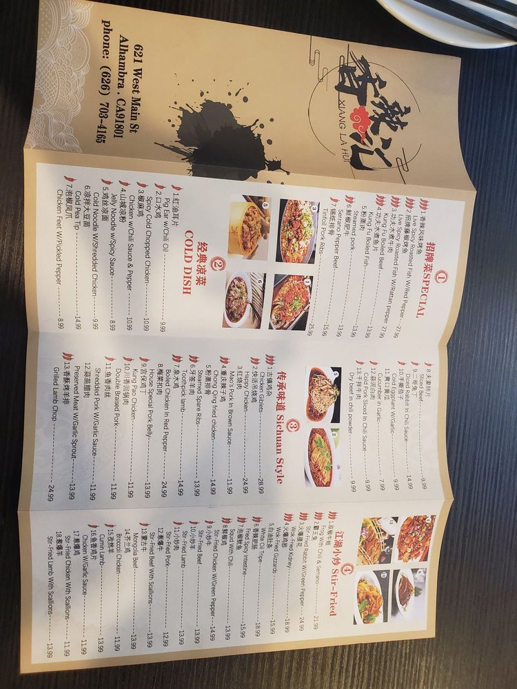 Xiang La Hui香辣汇 offers a delightful Szechuan dining experience in Alhambra, CA. The menu features standout dishes like the toothpick lamb, Kung Fu fish, pickled vegetable fish soup, and wok fried intestine. Customers rave about the flavorful and spicy offerings, with generous portions that satisfy. The Mediterranean-style ambiance adds a unique touch, creating a cozy and leisurely atmosphere. Service is top-notch, with attentive and cheerful staff who engage with diners, making the experience enjoyable. Notable highlights include the crispy and flavorful toothpick lamb, fried intestines, and twice-cooked pork. While some dishes may be on the spicier side, overall, Xiang La Hui delivers on authenticity and taste. Don't miss out on this authentic Szechuan spot in SGV for a memorable dining experience.